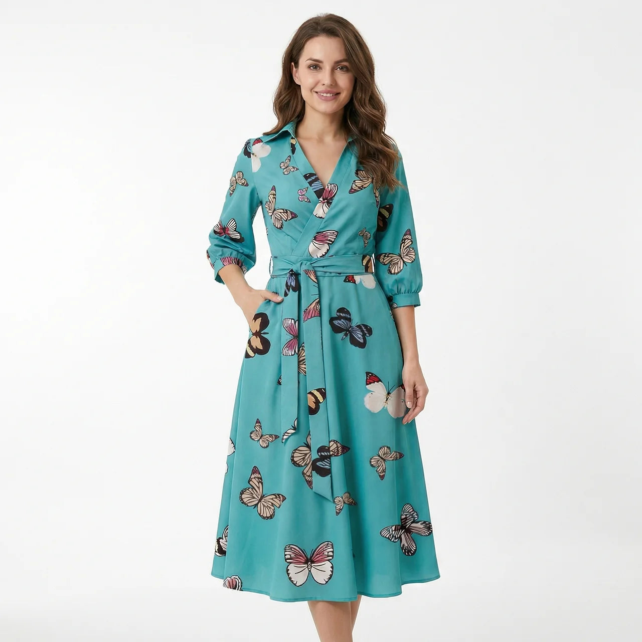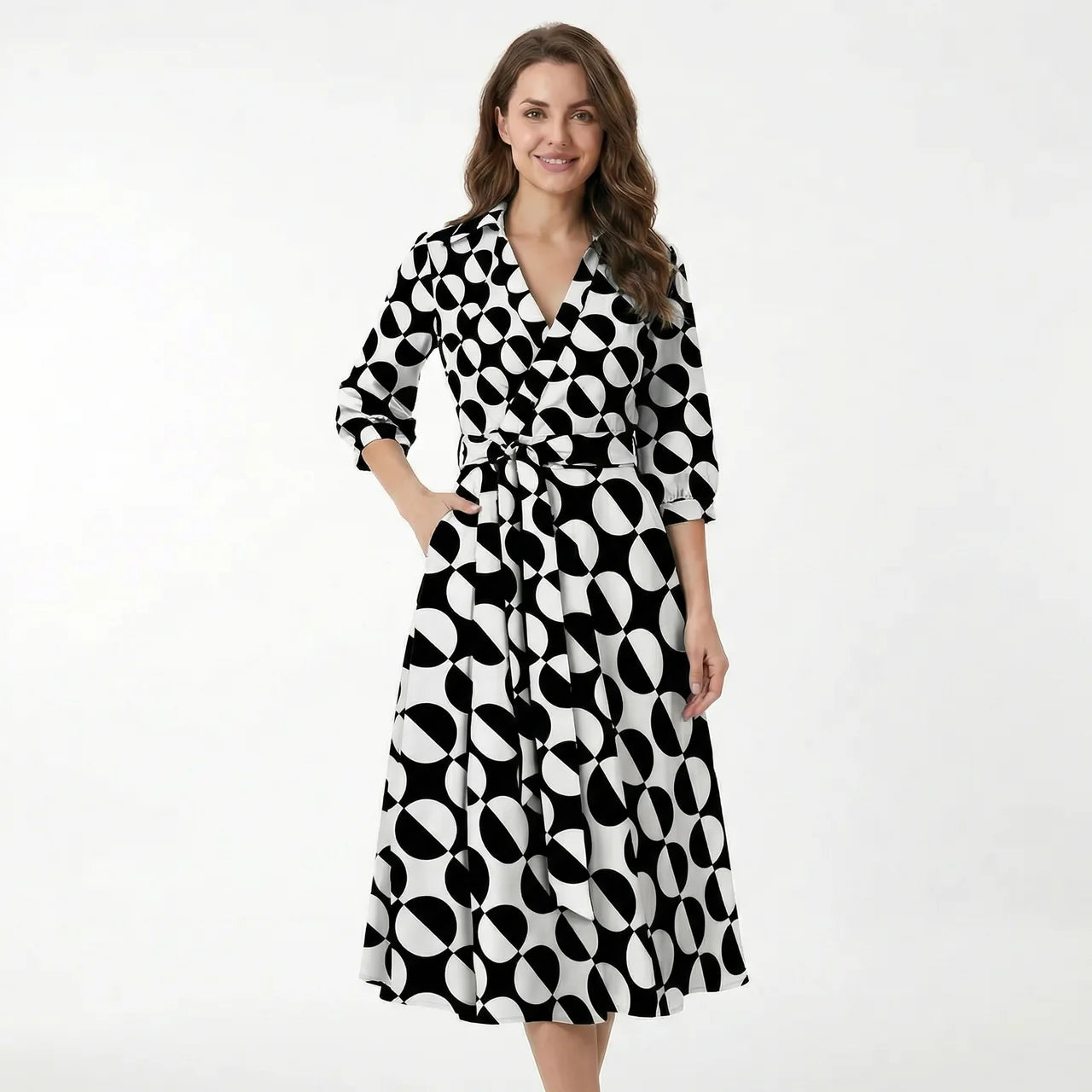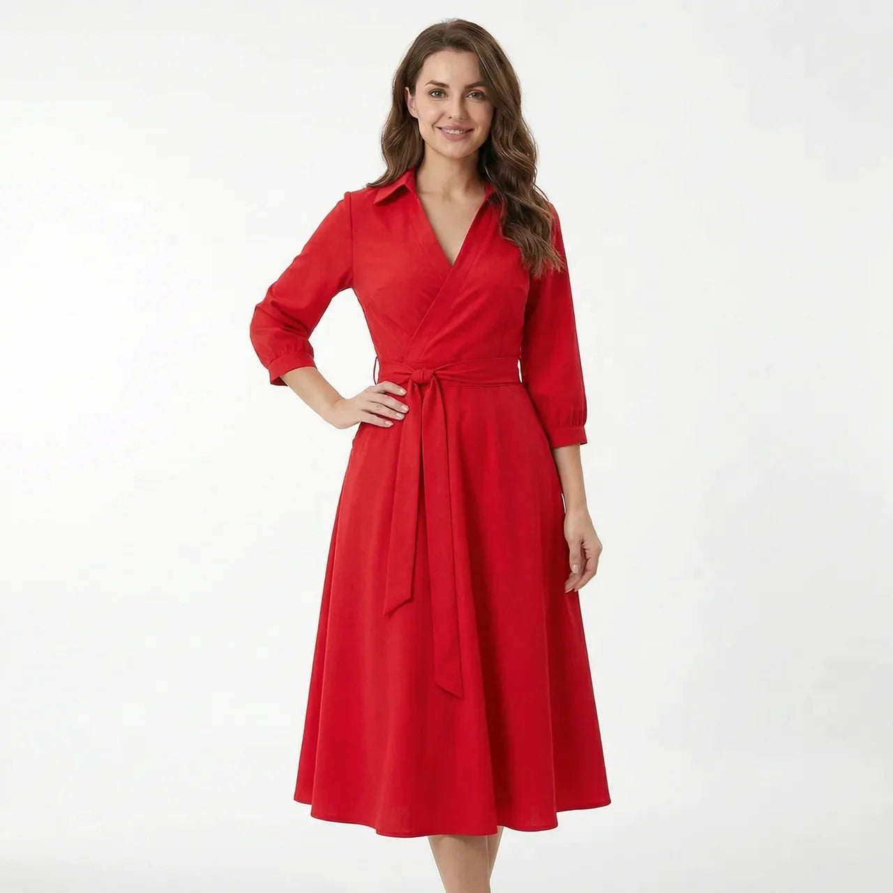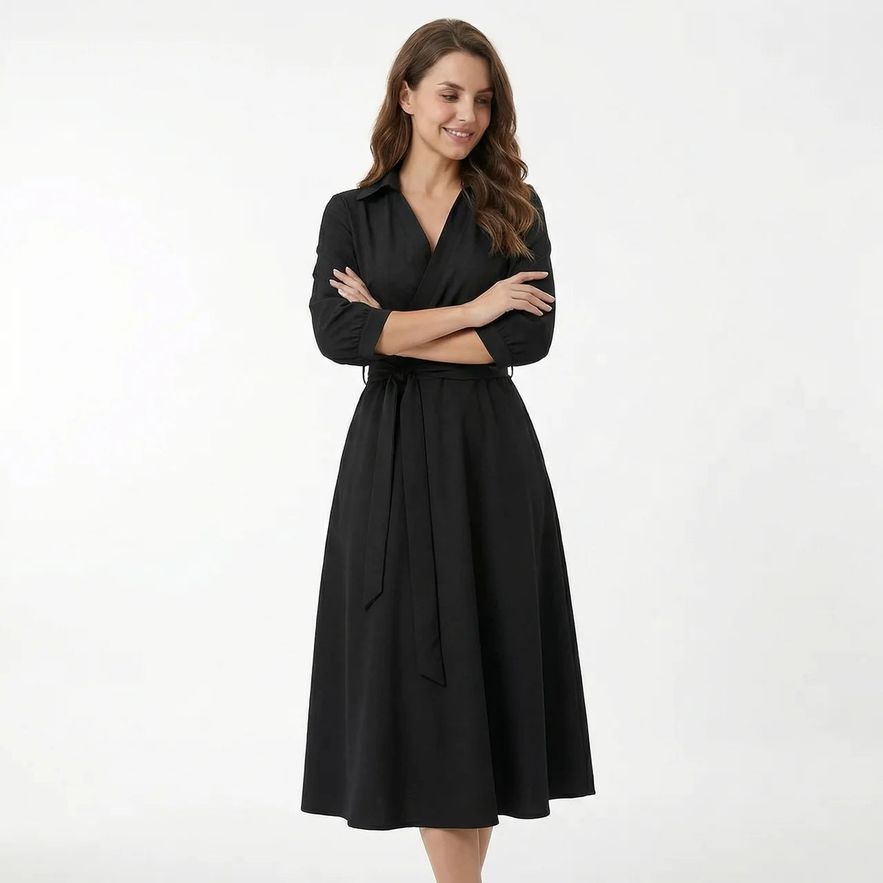 Ta sukienka kopertowa została stworzona z myślą o stylizacjach do pracy i na wieczorne wyjścia. Regulowana talia pozwala dopasować fason do własnych preferencji, a płynna linia pomaga zachować dopracowany wygląd. Uniwersalny charakter ułatwia łączenie jej z obcasami, botkami lub płaskimi butami. To model, po który sięgniesz, gdy zależy Ci na schludnym efekcie bez zbędnego wysiłku.