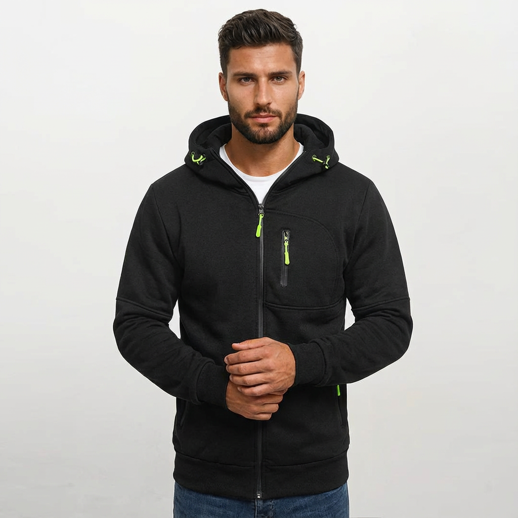 Męska bluza z kapturem i zamkiem została zaprojektowana z myślą o codziennym użytkowaniu i łatwym łączeniu z innymi elementami garderoby. Klasyczny krój oraz luźniejsza forma sprawiają, że sprawdza się w wielu sytuacjach — od aktywnego dnia po spokojniejsze wyjścia. Praktyczne detale podnoszą jej funkcjonalność bez nadmiaru ozdobników.