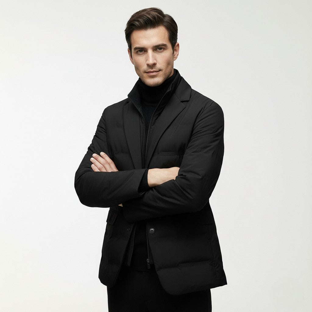 Połączenie eleganckiej formy marynarki z funkcją kurtki — odpowiednie na sezon zimowy. Dopasowany krój podkreśla sylwetkę, a pikowanie sprzyja dobremu odczuciu podczas chłodnych dni. Dobrze sprawdza się w pracy oraz w czasie spotkań po godzinach.