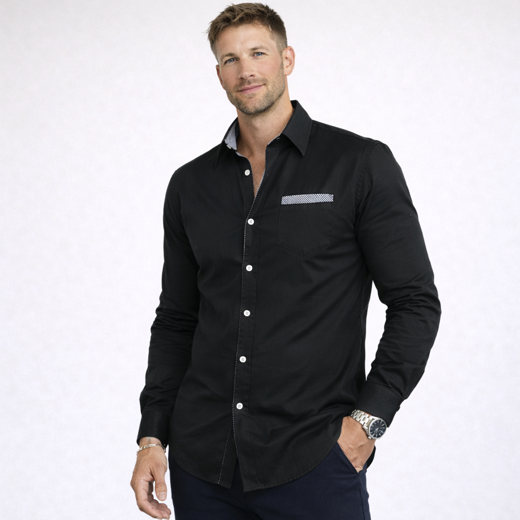 Ta męska koszula slim z długim rękawem została stworzona z myślą o nowoczesnej, uporządkowanej sylwetce. Wzorzyste wykończenie po wewnętrznej stronie kołnierza i mankietów dodaje charakteru—szczególnie gdy rozepniesz górny guzik lub podwiniesz rękawy. Łatwo połączysz ją z bardziej dopracowanymi zestawami albo z codziennym stylem.