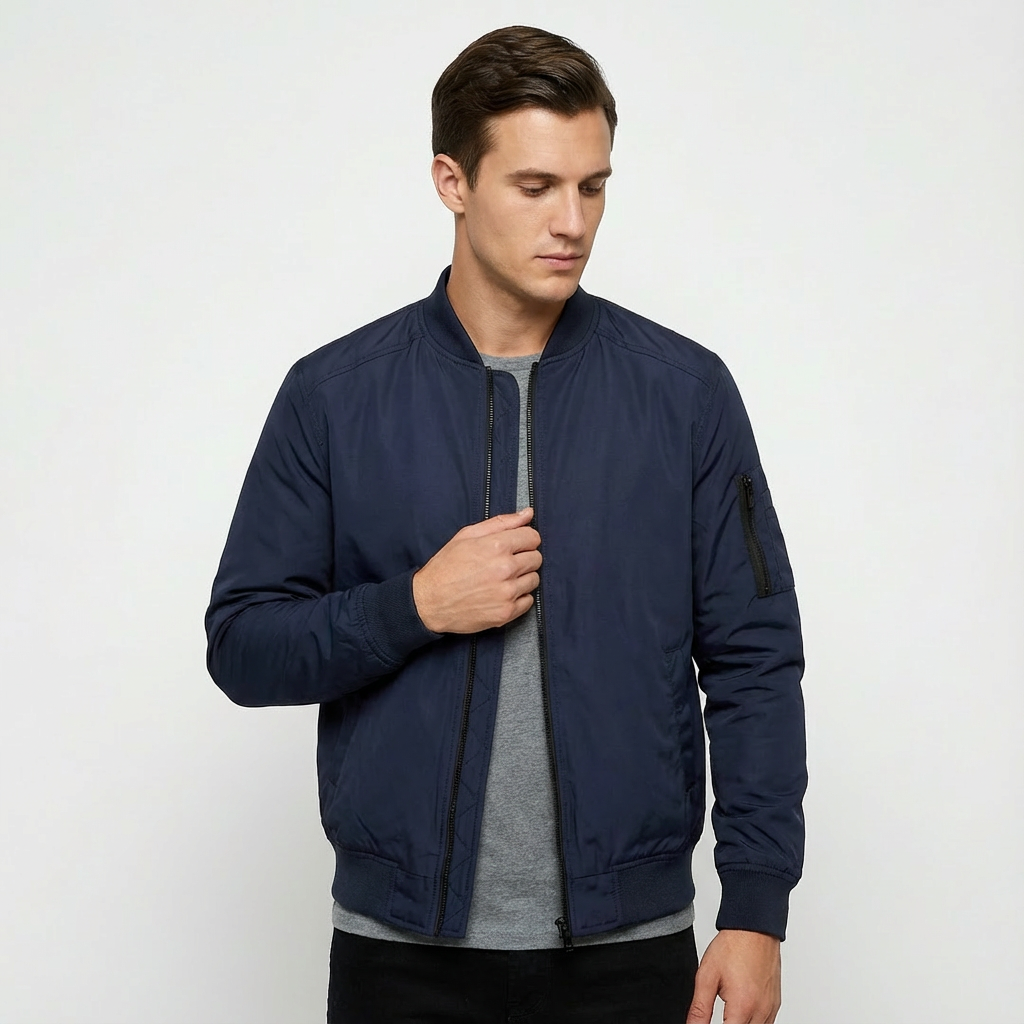 Męska kurtka typu bomber zaprojektowana z myślą o swobodnych stylizacjach przez cały rok. Jej dopracowany fason oraz wnętrze wspierające użytkowanie podczas chłodniejszych dni sprawiają, że świetnie uzupełnia miejskie zestawy, zarówno na co dzień, jak i na wieczorne wyjścia.