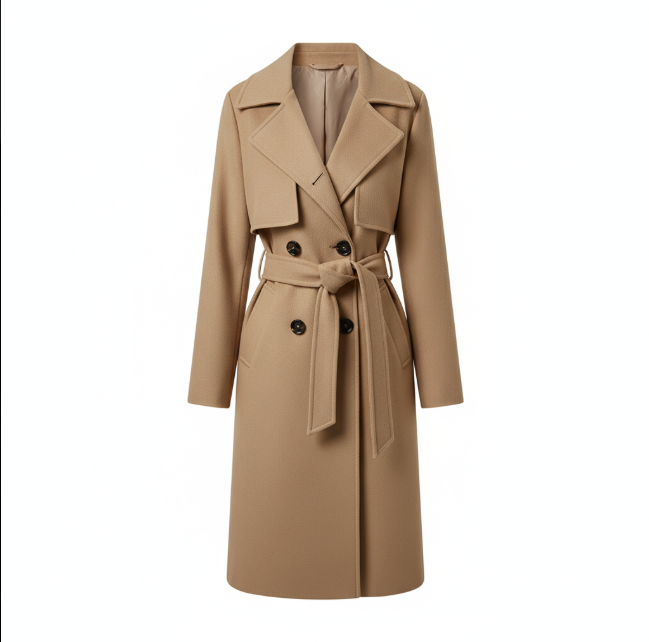 Płaszcz Trencz z Kołnierzem i Wiązanym Pasem – Zima