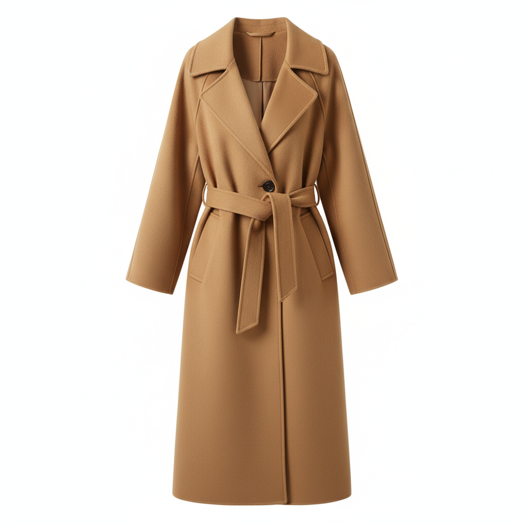 Płaszcz Trencz z Paskiem Długiej Długości – Przytulny z Długim Rękawem