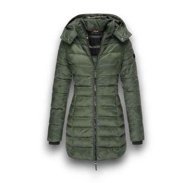 Długi Zimowy Płaszcz z Kapturem - Zapięcie na Zamek