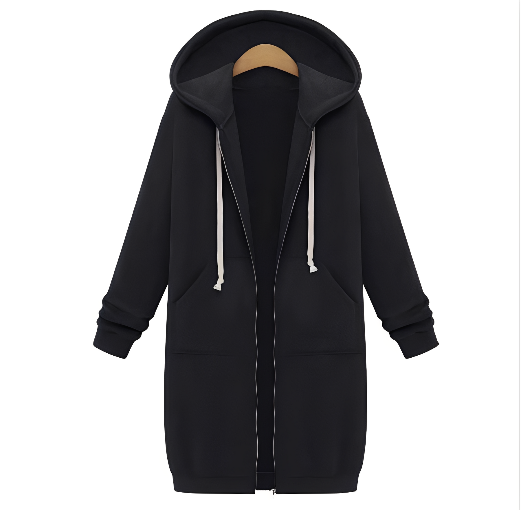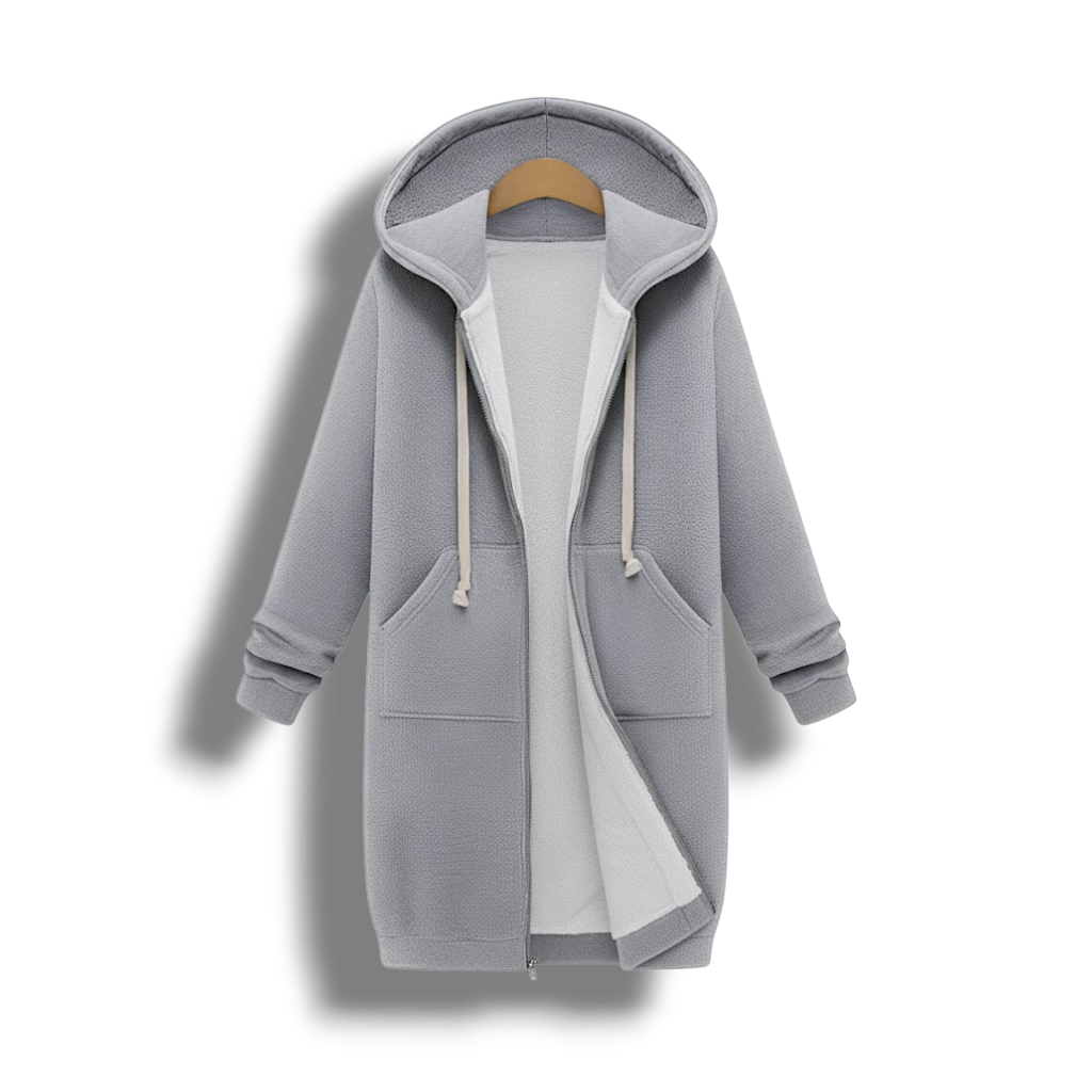 Przytulny Płaszcz Zimowy Do Kolan Z Kapturem – Luźny Krój