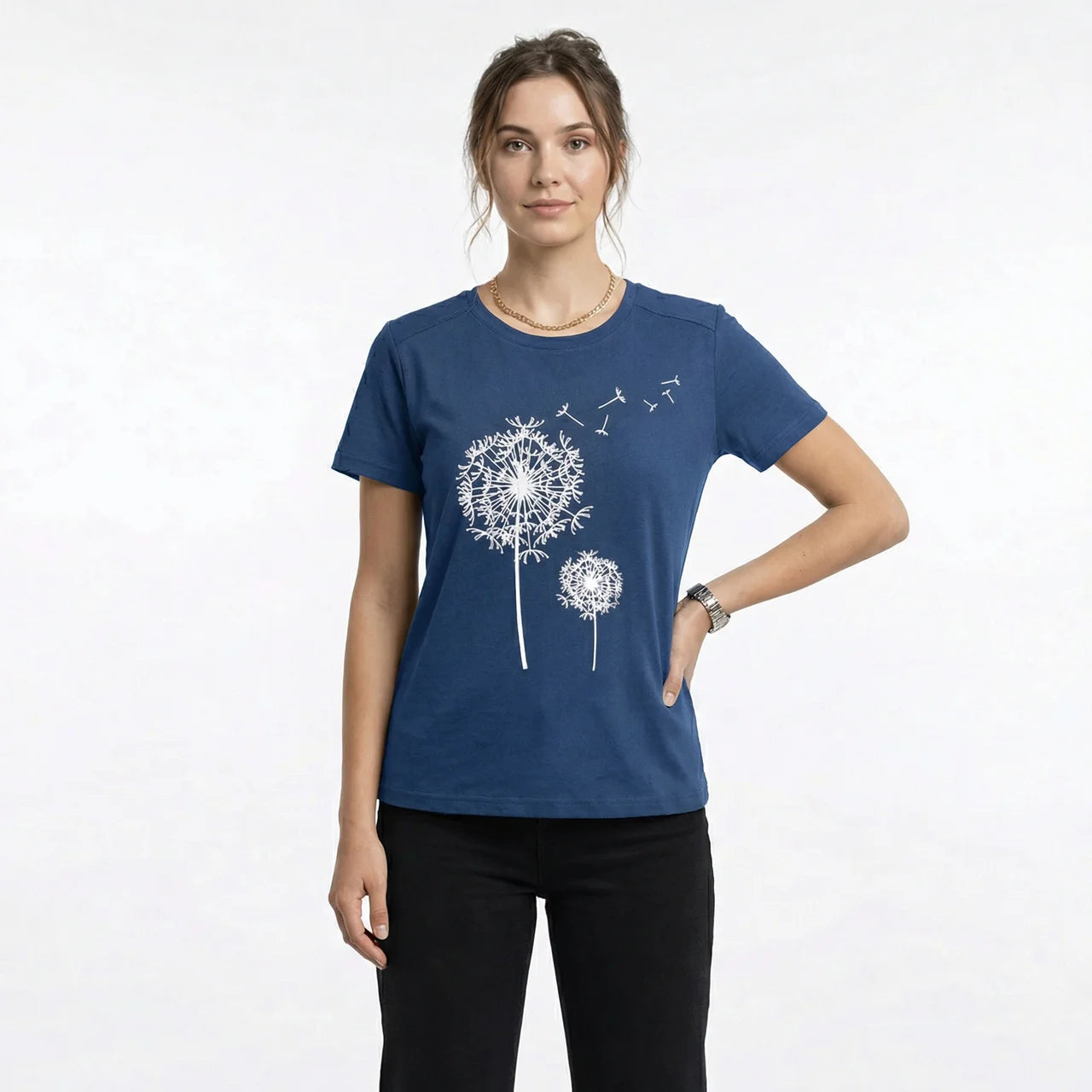 Ten letni T-shirt to łatwy wybór, gdy chcesz schludnego, codziennego looku bez wysiłku. Okrągły dekolt i swobodniejsza forma sprawiają, że możesz nosić go solo albo potraktować jako bazę pod warstwy. Wystarczy dodać jeansy, szorty lub spódnicę i stylizacja jest gotowa.