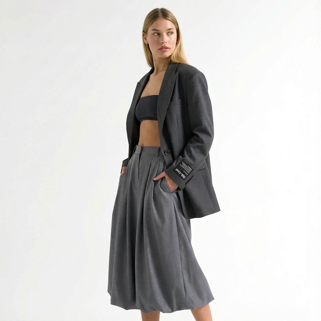 Ten oversize’owy żakiet został stworzony z myślą o osobach ceniących prostotę i nowoczesne formy. Swobodny fason nadaje stylizacji wyrazistości, a jednocześnie pozostaje łatwy do zestawienia na co dzień, do pracy lub na wieczorne wyjścia. Klasyczne klapy i uporządkowana forma sprawiają, że model doskonale wpisuje się w minimalistyczną garderobę.